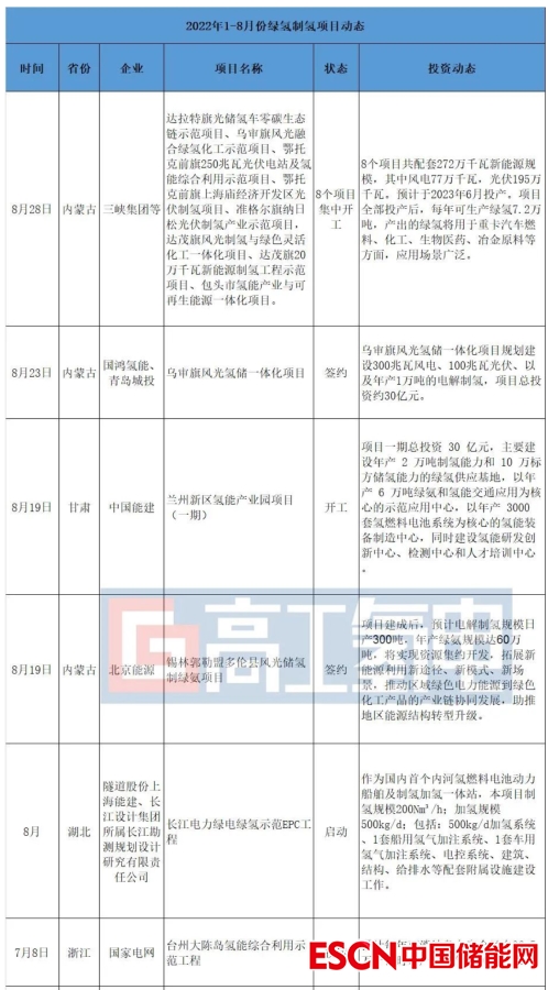 在國(guó)內(nèi)政策的推動(dòng)下,眾多大型能源企業(yè)及上市公司紛紛宣布入局可再生能源制氫領(lǐng)域,在內(nèi)蒙古、甘肅、新疆、遼寧、河南、江西、河北等省市投建綠氫項(xiàng)目。詳情如下: