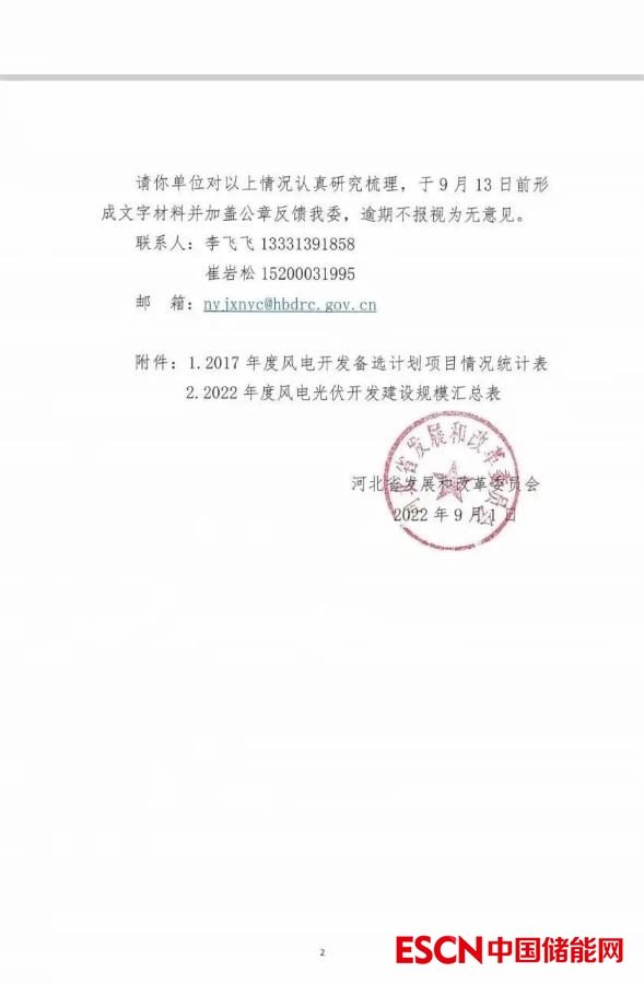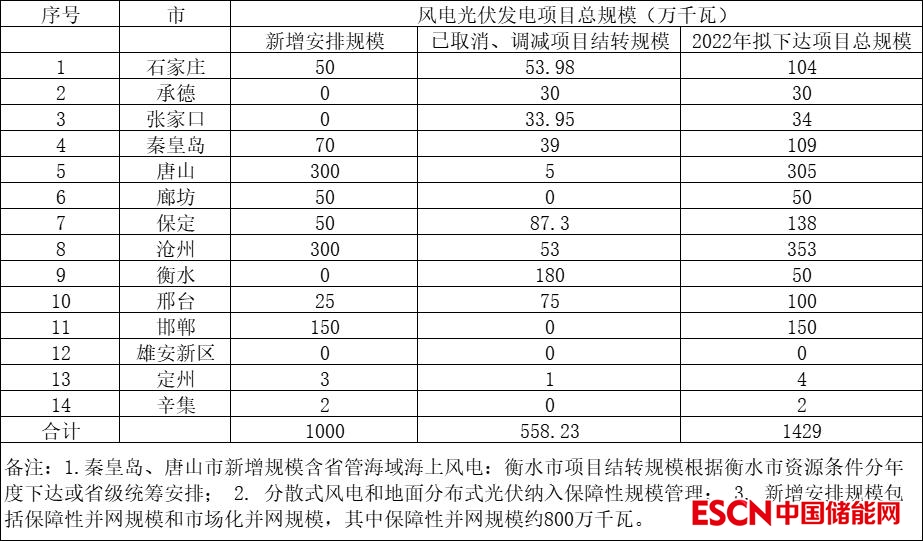 中國儲(chǔ)能網(wǎng)訊:9月1日,河北省發(fā)改委發(fā)布了《關(guān)于征求風(fēng)電光伏項(xiàng)目開發(fā)建設(shè)意見建議的函》,并公示了 2022年度風(fēng)電、光伏開發(fā)建設(shè)規(guī)模匯總表。