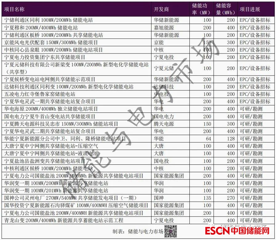 表:寧夏已啟動(dòng)獨(dú)立式儲(chǔ)能項(xiàng)目