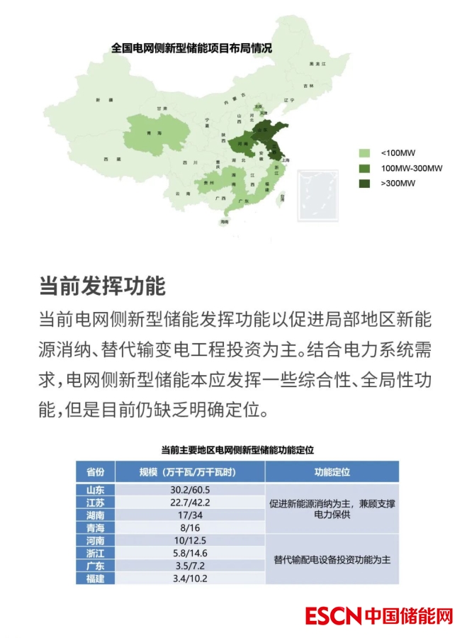 電規(guī)總院表示,當前電網(wǎng)側新型儲能發(fā)揮功能以促進局部地區(qū)新能源消納、替代輸變電工程投資為主。結合電力系統(tǒng)需求,電網(wǎng)側新型儲能本應發(fā)揮一些綜合性、全局性功能,但是目前仍缺乏明確定位。