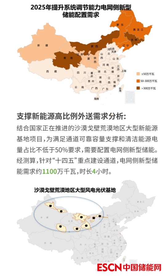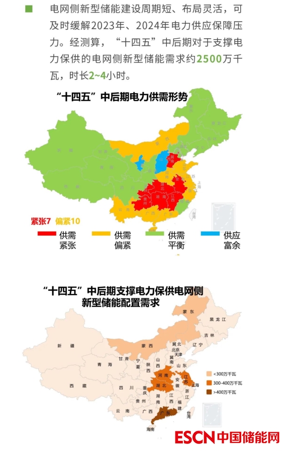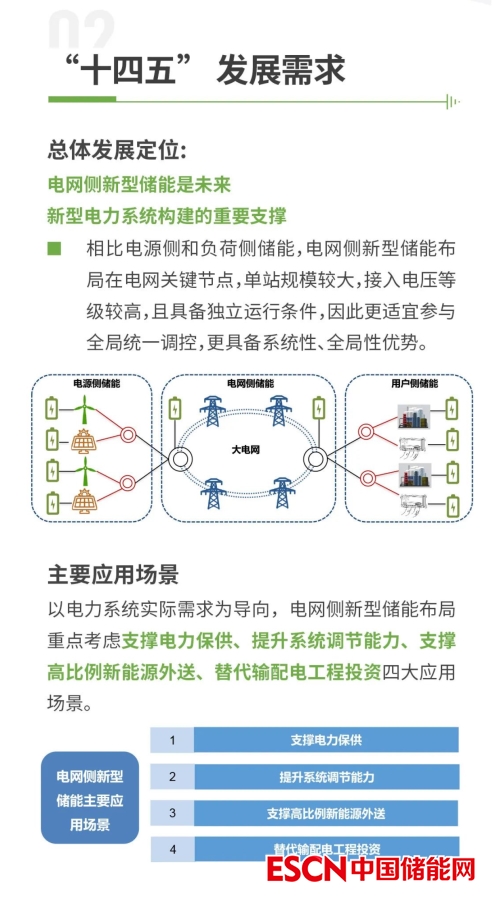 電規(guī)總院表示電網(wǎng)側新型儲能是未來新型電力系統(tǒng)構建的重要支撐。據(jù)預測,“十四五”全國電網(wǎng)側新型儲能總需求規(guī)模約5500萬千瓦,時長2~4小時。應用場景以支撐電力保供、提升地區(qū)電力系統(tǒng)調(diào)節(jié)能力為主,三北地區(qū)規(guī)模需求略高于中東部地區(qū)。