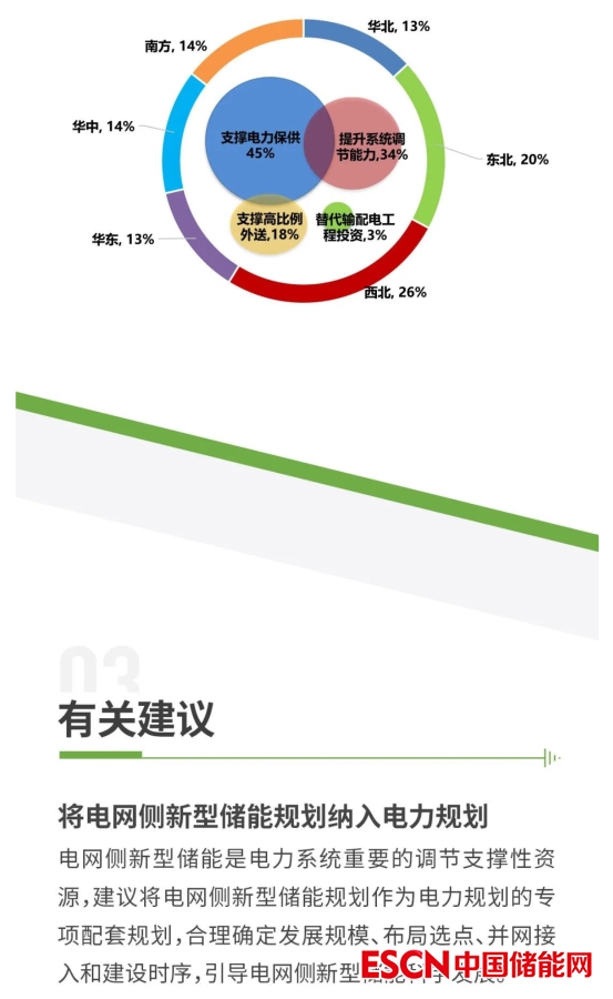 電網(wǎng)側新型儲能是電力系統(tǒng)重要的調(diào)節(jié)支撐性資源,建議將電網(wǎng)側新型儲能規(guī)劃作為電力規(guī)劃的專項配套規(guī)劃,合理確定發(fā)展規(guī)模、布局選點、并網(wǎng)接入和建設時序,引導電網(wǎng)側新型儲能科學發(fā)展。