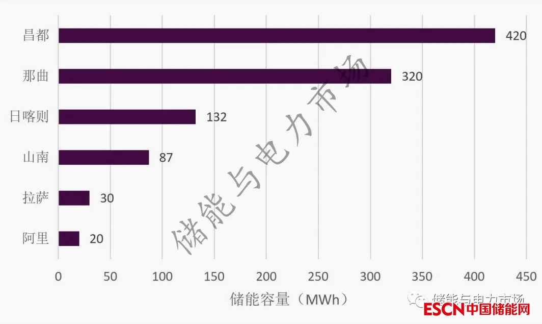 就項目的分布地區(qū)來看,昌都市分布項目最多,儲能容量最大,共計15個項目,儲能容量達(dá)420MWh,那曲以320MWh的儲能容量緊隨其后。
