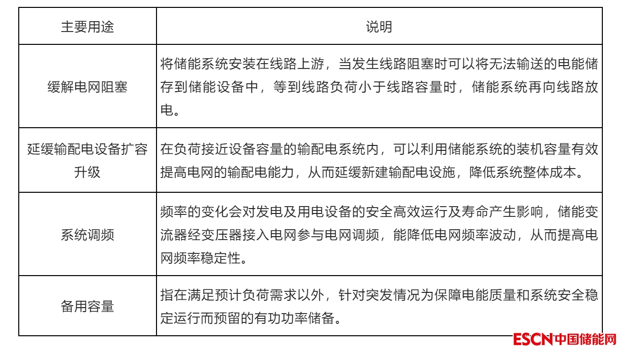 在電網(wǎng)側,儲能可以提高電力系統(tǒng)安全性,具體表現(xiàn)為能夠緩解電網(wǎng)阻塞,延緩輸配電設備擴容升級,還能參與系統(tǒng)調(diào)峰調(diào)頻或是充當備用容量。