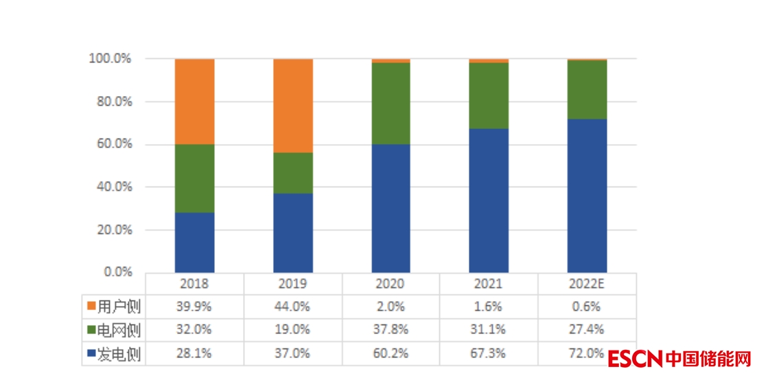 電化學儲能產(chǎn)業(yè)鏈下游的應用場景主要有發(fā)電側、電網(wǎng)側和用戶側儲能等。近幾年間,我國發(fā)電側電化學儲能裝機占下游應用領域總裝機的比重不斷增長,而用戶側的電化學儲能裝機占比呈現(xiàn)下降趨勢,此外,由于成本疏導等問題,電網(wǎng)對電化學儲能的熱衷度并不如抽水蓄能。隨著新能源的快速發(fā)展,儲能電站的需求規(guī)模越來越大,電化學儲能應用場景將越來越豐富。