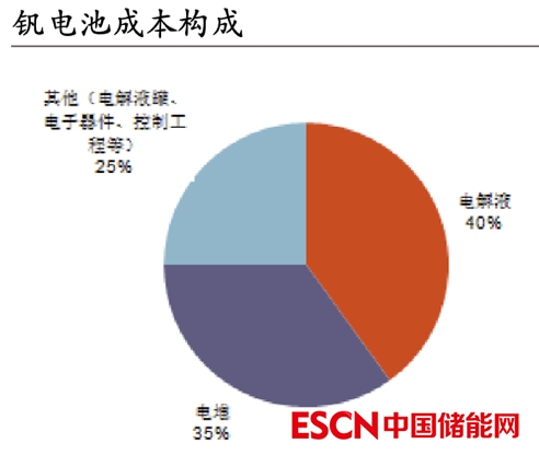 但是從全生命周期角度看,全釩的成本約0.32-0.4元/Wh,成本依然低于鋰電池(鋰電池成本0.5-0.7元/Wh)。