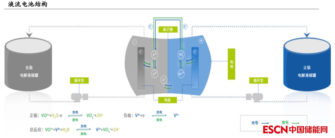 原理是通過正負(fù)極電解液中的活性物質(zhì)發(fā)生氧化還原反應(yīng)(電解液之間循環(huán))來儲(chǔ)存和釋放電能。