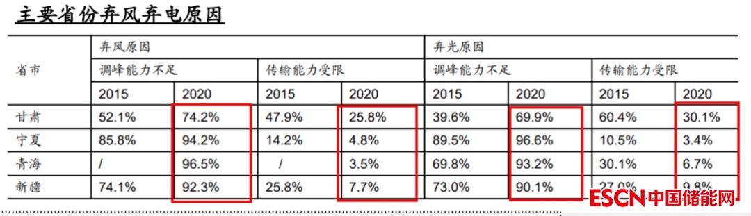 另一方面儲(chǔ)能可以解決西部地區(qū)棄風(fēng)棄電問題。我國風(fēng)光電資源最豐富的地區(qū)是西部,但是用電大戶都在東部,這就有一個(gè)資源與需求逆向分布的現(xiàn)象,所以過去為了保證“西電東送”的順利成功,國家大力建設(shè)了高壓輸電網(wǎng)絡(luò),如今“送”已經(jīng)不是困擾新能源消納的主要原因,調(diào)峰能力不足才是關(guān)鍵因素,而且隨著新能源裝機(jī)量的持續(xù)增長這個(gè)問題逐步加劇。