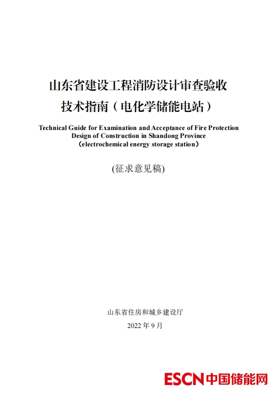 中國儲能網(wǎng)訊:9月6日,山東省住房和城鄉(xiāng)建設(shè)廳發(fā)布關(guān)于征求《山東省建設(shè)工程消防設(shè)計審查驗收技術(shù)指南(電化學(xué)儲能電站)》意見的通知。