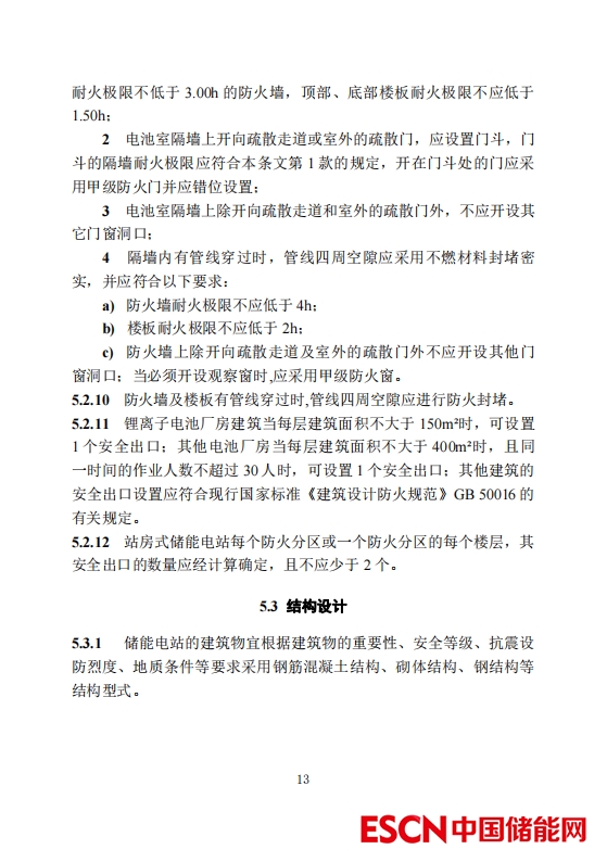 鋰離子電池設(shè)備宜分區(qū)布置,單層電池廠房單個電池室額定能量不宜超過 30MWh,多層電池廠房單個電池室額定能量不宜超過15MWh。屋外電池預(yù)制艙(柜)布置分區(qū)內(nèi)儲能系統(tǒng)額定能量不宜超過200MWh,相鄰分區(qū)的間距不應(yīng)小于10m。當(dāng)間距不能滿足時,應(yīng)設(shè)置耐火極限不低于4.00h的防火墻,防火墻應(yīng)超出設(shè)備外輪廓1.0m。