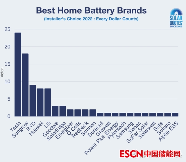 這是一個有趣的結果——因為在投票時,SolarEdge的5kW/10kWh Energy Bank(又稱SolarEdge家用電池)還沒有在澳大利亞上市。