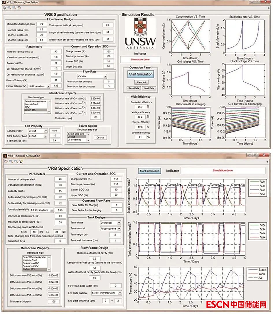圖9 液流電池能效與溫度模擬仿真平臺