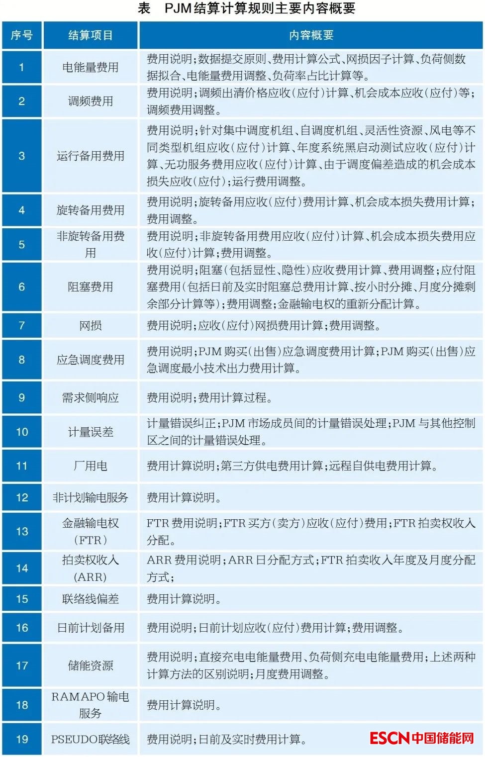 一是結(jié)算規(guī)則堅決做到“不以簡為美”。由于結(jié)算規(guī)則直接體現(xiàn)了經(jīng)濟關(guān)系的落實,是資源優(yōu)化配置的貨幣方式體現(xiàn),事關(guān)眾多市場主體切身利益,避免結(jié)算機構(gòu)有自由裁量權(quán),結(jié)算規(guī)則就不能“以簡為美”,結(jié)算服務(wù)內(nèi)容要“應(yīng)細必細、應(yīng)含必含”。以PJM為例,其市場規(guī)則包括結(jié)算計算和結(jié)算兩個獨立的子規(guī)則,對結(jié)算計算、結(jié)算流程都進行了非常詳細的描述。在結(jié)算計算章節(jié)中,包含了電能量、調(diào)頻、備用、阻塞費用等19項具體的結(jié)算內(nèi)容,且每一項都有詳細的說明,包括結(jié)算項目的定義、結(jié)算計算公式,以及特殊情況的處理方式等。具體內(nèi)容如表所示。