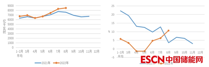 圖1 2021、2022年分月全社會(huì)用電量及其增速