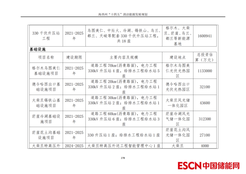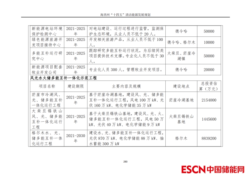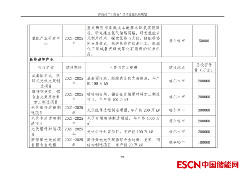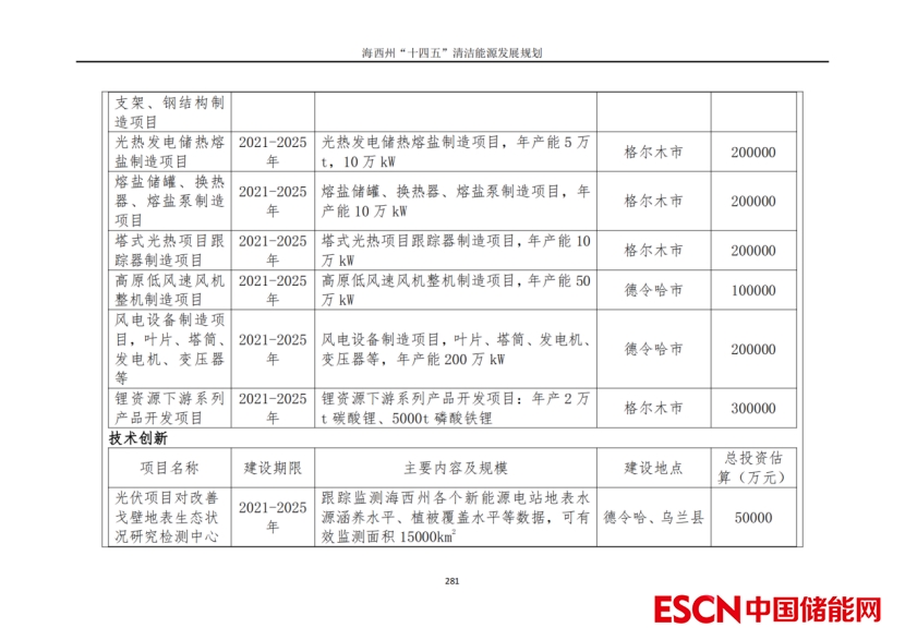投資情況方面,海西州“十四五”規(guī)劃推薦方案光伏新增1520萬(wàn)千瓦,投資需求約494億元;風(fēng)電新增830萬(wàn)千瓦,投資需求約539.5.5億元,光熱55萬(wàn)千瓦,投資需求約119億元;新能源發(fā)電配套電化學(xué)儲(chǔ)能投資約193.2億元;基礎(chǔ)設(shè)施投資約256億元;特高壓外送通道工程投資約358億元;清潔能源配套產(chǎn)業(yè)和技術(shù)研究投資約305億元?!笆奈濉币?guī)劃新增各類項(xiàng)目總投資合計(jì)約2311.7億元。