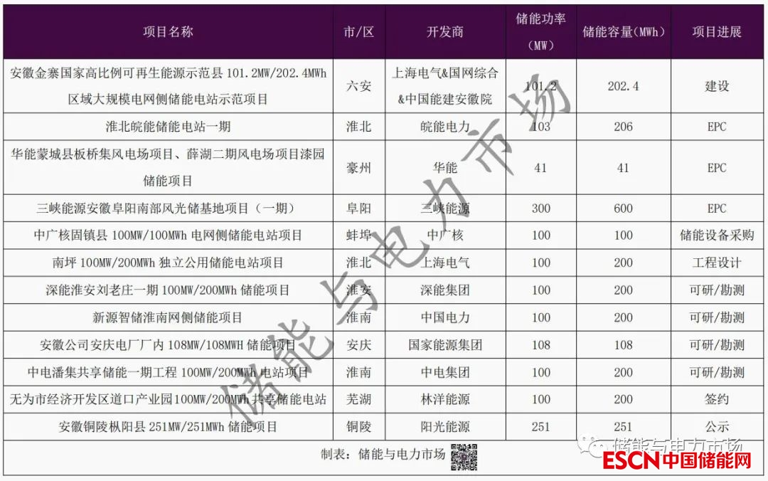 表 安徽已啟動(dòng)獨(dú)立儲(chǔ)能項(xiàng)目