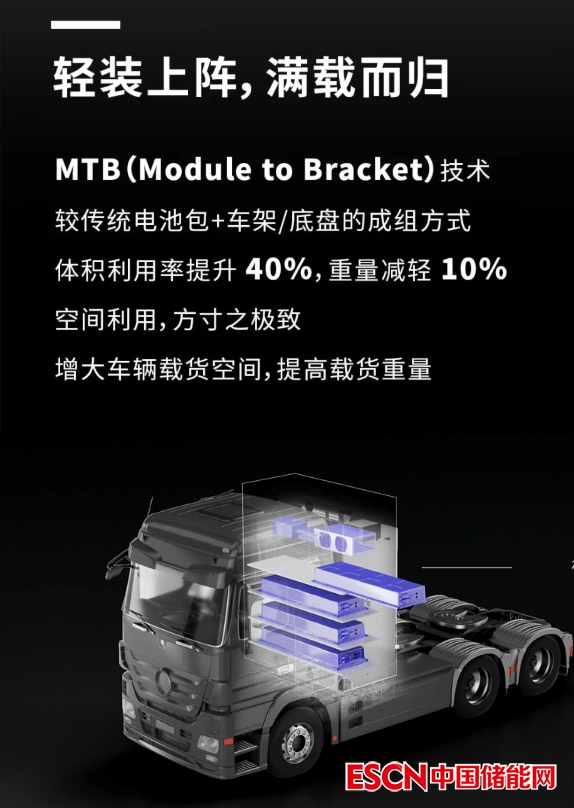 日前,動力電池龍頭企業(yè)寧德時代(SZ300750,股價421.01元,市值1.03萬億元)發(fā)布了其首創(chuàng)的 MTB(Module to Bracket,模塊集成底盤)技術。據(jù)了解,這是一項應用于重卡和工程機械的新型電池模組技術,與傳統(tǒng)電池包+車架/底盤的成組方式相比,可提升系統(tǒng)體積利用率40%,并減重10%。