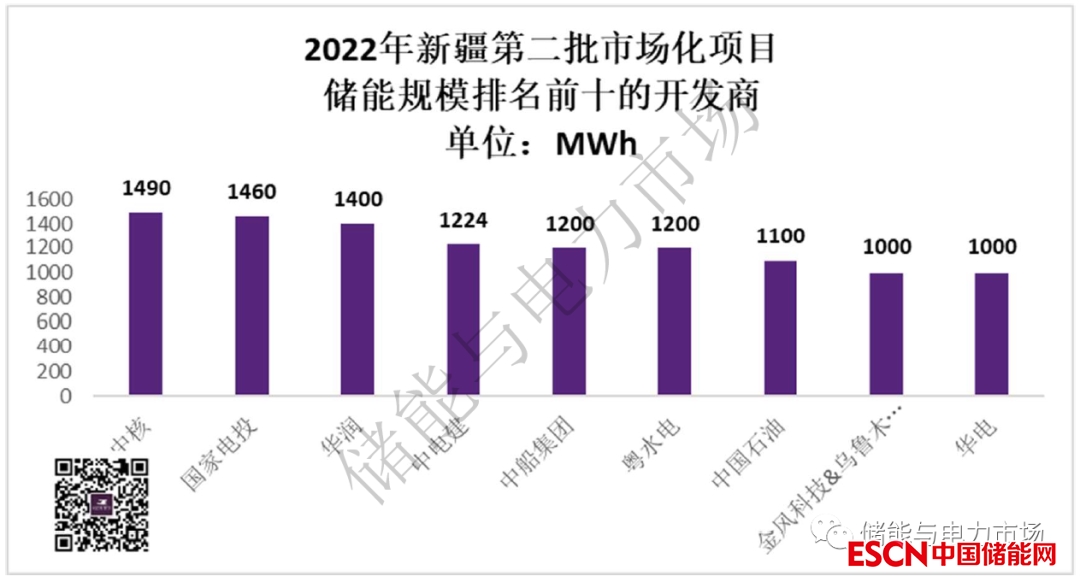 第二批市場化并網(wǎng)項(xiàng)目中,央企配置大量儲(chǔ)能,超過1000MWh的企業(yè)就達(dá)到了9家,如下圖所示。