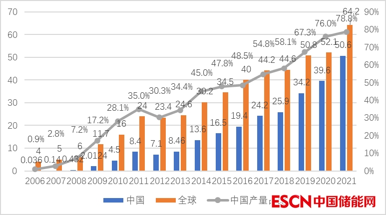 2006-2021年全球和中國多晶硅產(chǎn)量