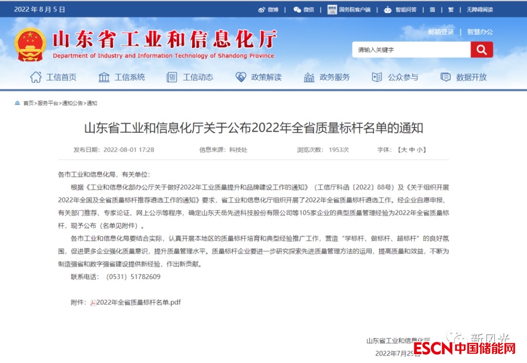 近日,山東省工業(yè)和信息化廳公布了2022年全省質(zhì)量標(biāo)桿名單,新風(fēng)光電子科技股份有限公司成功入選!