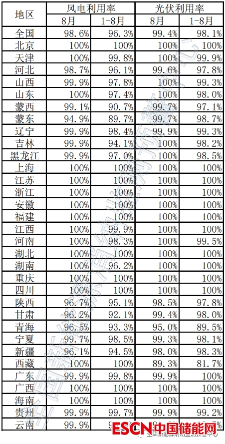 數(shù)據(jù)顯示,2022年8月,全國(guó)風(fēng)電、光伏的利用率分別為98.6%、99.4%;2022年1~8月,全國(guó)風(fēng)電、光伏的利用率分別為96.3%、98.1%。