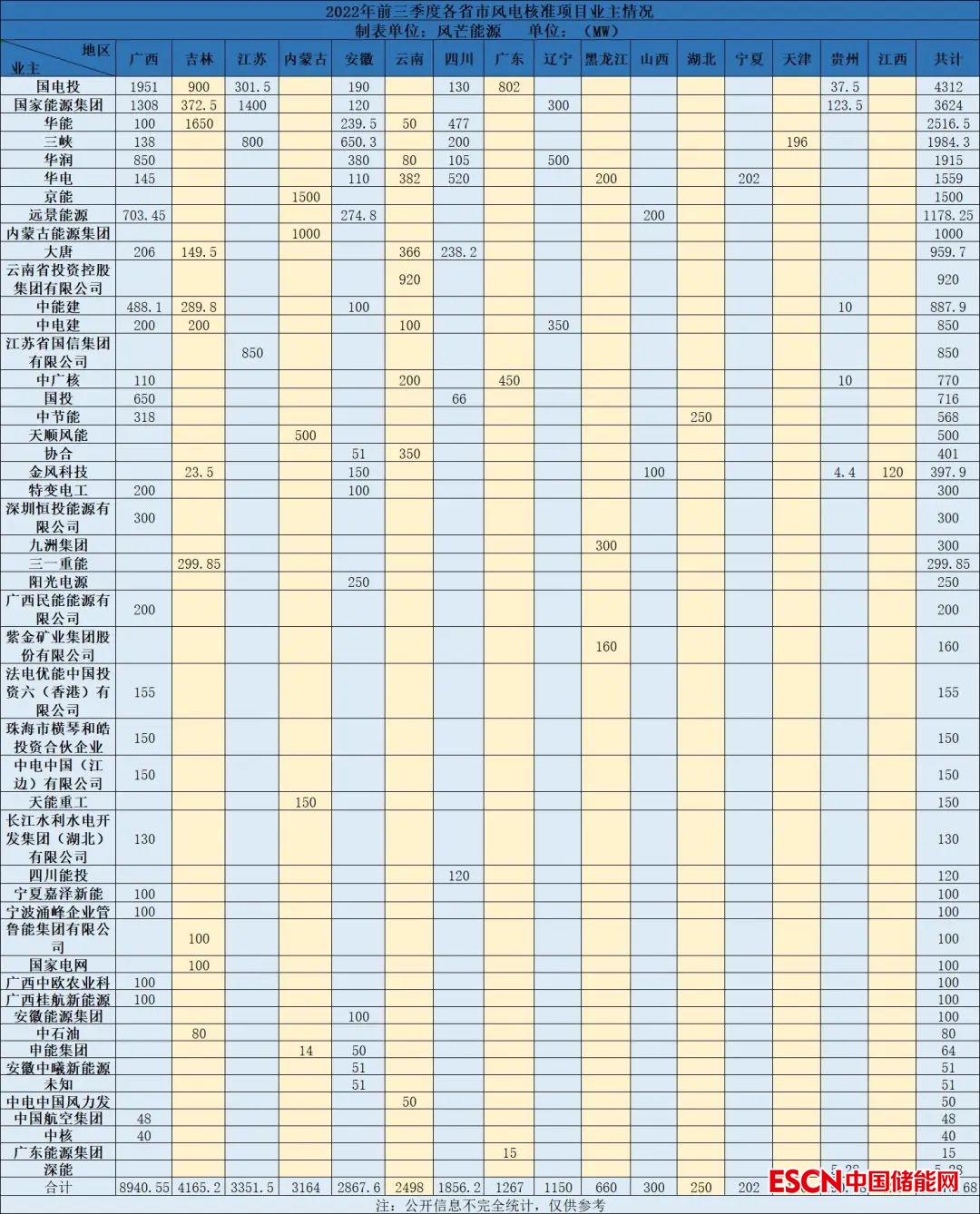 具體來看,前三季度廣西共批復(fù)了8.9GW風(fēng)電項目位居第一。在廣西核準(zhǔn)風(fēng)電項目中,國電投以接近2GW核準(zhǔn)項目容量排名第一。第二名國家能源集團(tuán)核準(zhǔn)項目超1GW,華潤、遠(yuǎn)景能源次之。