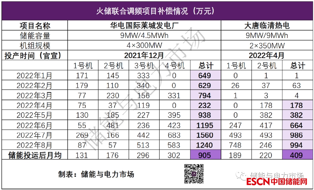 華電國(guó)際萊城發(fā)電廠2022年1-8月間,月均獲得AGC調(diào)頻輔助服務(wù)補(bǔ)償905萬(wàn)元,3號(hào)機(jī)、4號(hào)機(jī)月均補(bǔ)償分別為296萬(wàn)元、302萬(wàn)元(儲(chǔ)能大概率與這兩個(gè)機(jī)組聯(lián)合運(yùn)行)。