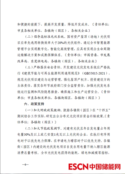 中國儲(chǔ)能網(wǎng)訊:10月9日,廣東東莞市發(fā)改委印發(fā)《東莞市加快分布式光伏規(guī)?;_發(fā)利用工作方案》。其中提出要推動(dòng)光伏配建儲(chǔ)能設(shè)施建設(shè),加大新型儲(chǔ)能技術(shù)應(yīng)用與推廣,鼓勵(lì)裝機(jī)容量2兆瓦及以上的光伏發(fā)電項(xiàng)目,按照不低于裝機(jī)容量8%的比例配建儲(chǔ)能系統(tǒng),儲(chǔ)能系統(tǒng)作為光伏發(fā)電項(xiàng)目組成部分一并辦理備案。