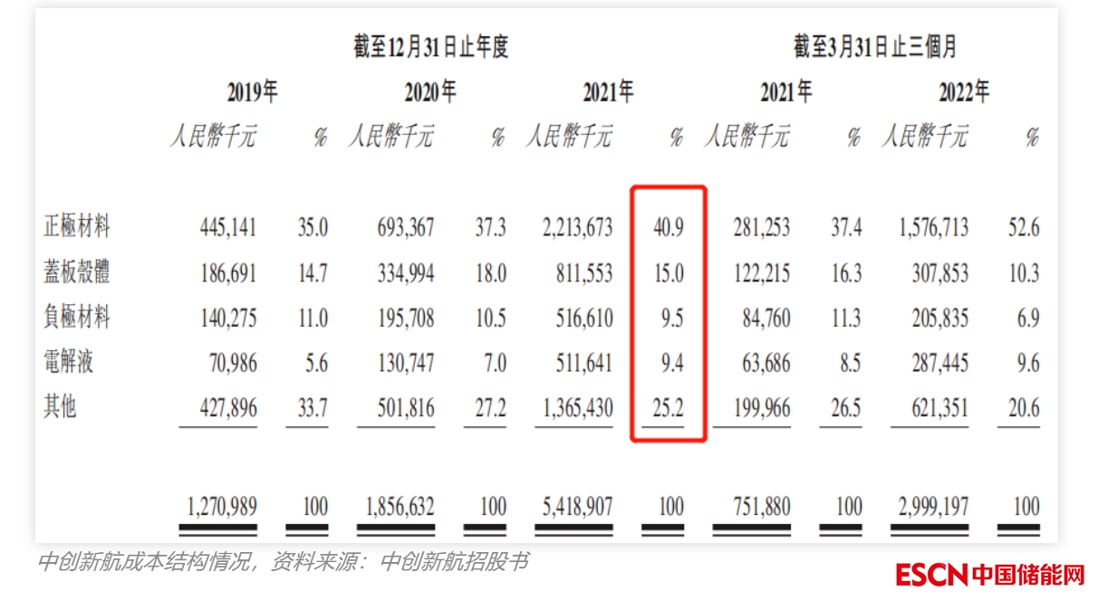 中創(chuàng)新航的平均采購(gòu)價(jià)也隨之上漲,2021年正極材料上漲37%、電解液上漲60%,2022年Q1同比分別上漲104%和60%。這就導(dǎo)致原材料成本占總銷(xiāo)售成本的比例從2020年的76.1%上漲到了84.2%。