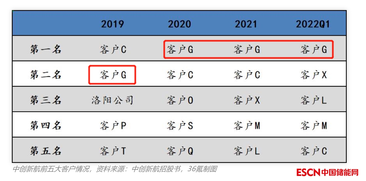2022年進(jìn)一步下降到31.0%,但這對(duì)于中創(chuàng)新航而言似乎不那么重要了。仔細(xì)看2021年前五大客戶(hù)名單就會(huì)發(fā)現(xiàn),除了一直在列的客戶(hù)G(廣汽)和客戶(hù)C(長(zhǎng)安),新加入了客戶(hù)X(小鵬)、客戶(hù)M(華霆?jiǎng)恿Γ┖涂蛻?hù)L(零跑),括號(hào)內(nèi)為36氪通過(guò)多方證明和推斷。