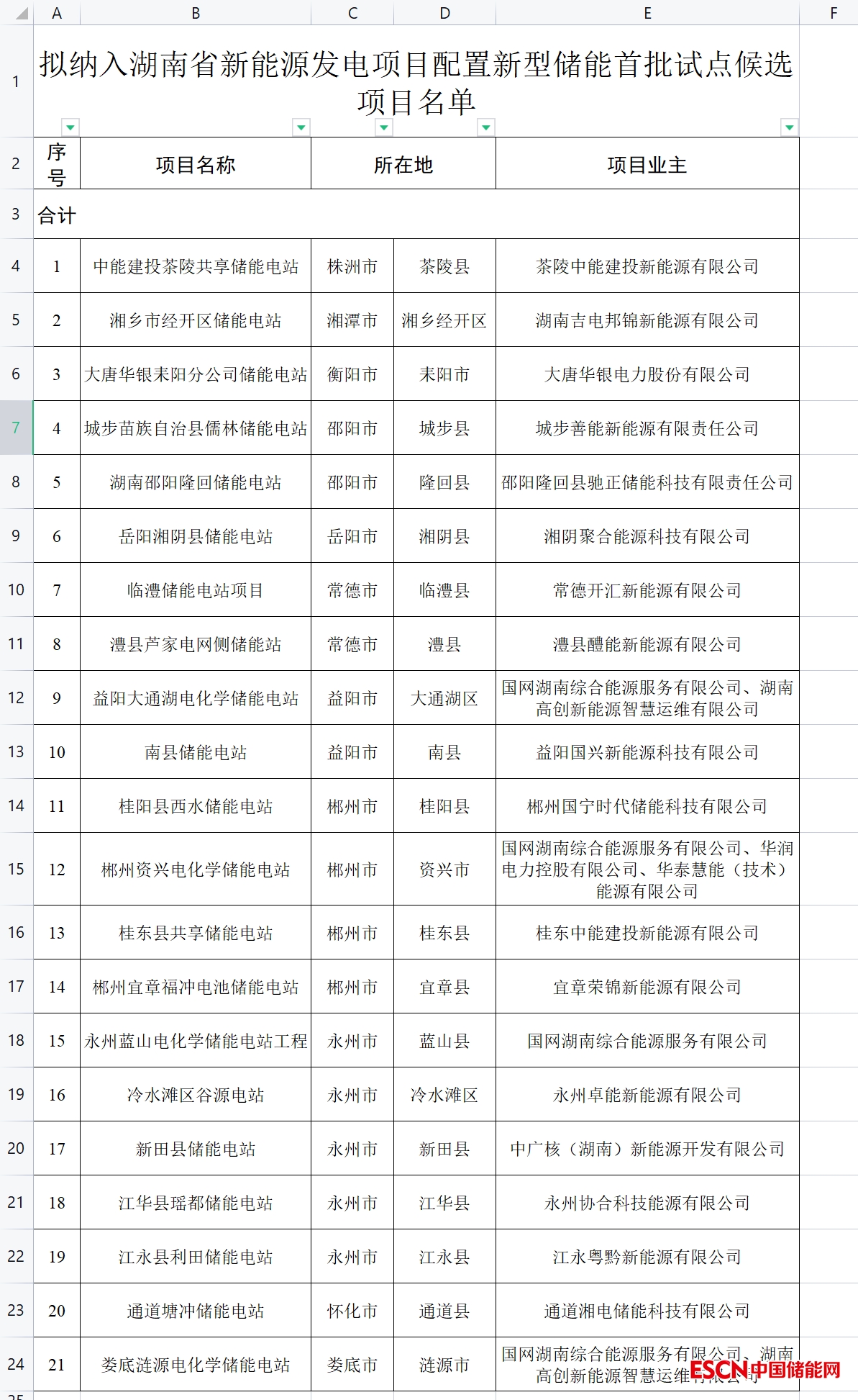 附件:擬納入湖南省新能源發(fā)電項(xiàng)目配置新型儲(chǔ)能首批試點(diǎn)候選項(xiàng)目名單