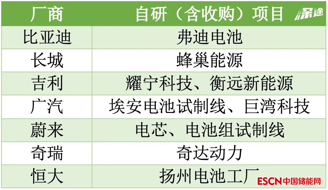 一部分車(chē)企在規(guī)劃動(dòng)力電池的自研。