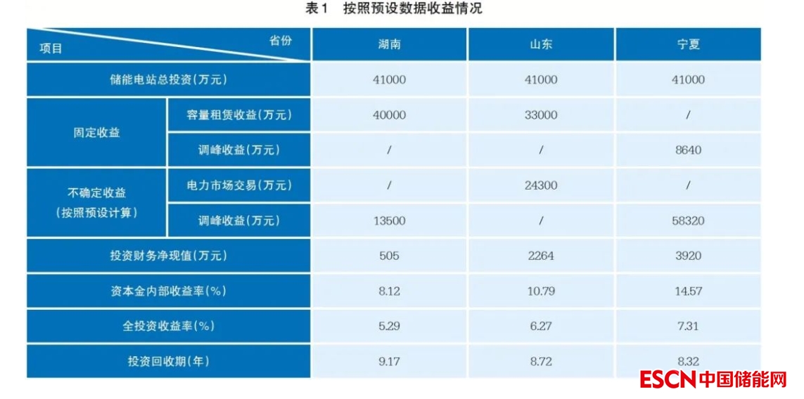 以100兆瓦/200兆瓦時儲能項目為例,對湖南、山東、寧夏商業(yè)模式進行分析。