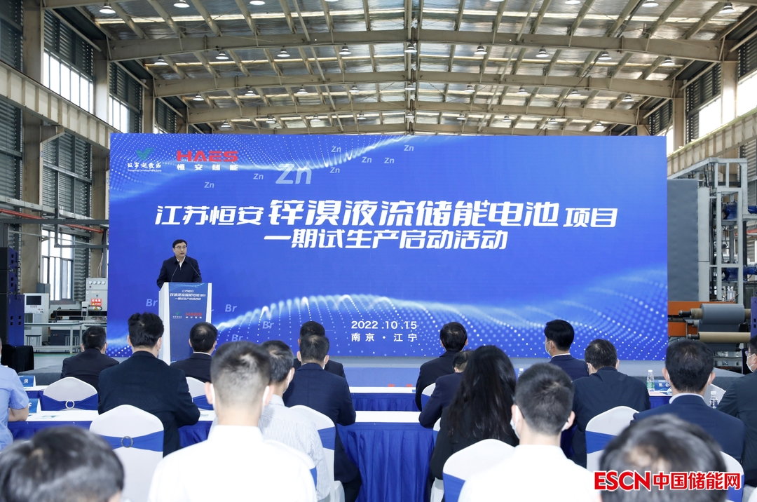 中國(guó)儲(chǔ)能網(wǎng)訊:10月15日下午,江蘇恒安鋅溴液流儲(chǔ)能電池項(xiàng)目一期試生產(chǎn)活動(dòng)在江寧開(kāi)發(fā)區(qū)舉辦,市委常委、區(qū)委書記林濤,區(qū)長(zhǎng)洪禮來(lái),區(qū)和開(kāi)發(fā)區(qū)領(lǐng)導(dǎo)張會(huì)祺、林云飛、龐志貴、周強(qiáng)、陳志海等,中國(guó)安儲(chǔ)能源集團(tuán)有限公司執(zhí)行董事彭遵丞,中國(guó)安儲(chǔ)能源集團(tuán)有限公司執(zhí)行董事、江蘇恒安儲(chǔ)能科技有限公司總經(jīng)理陸克,江蘇恒安儲(chǔ)能科技有限公司執(zhí)行董事趙峰先生等參加。該項(xiàng)目?jī)H用半年的時(shí)間就完成了從簽約到投產(chǎn)目標(biāo),是開(kāi)發(fā)區(qū)項(xiàng)目攻堅(jiān)突破的重要成果。