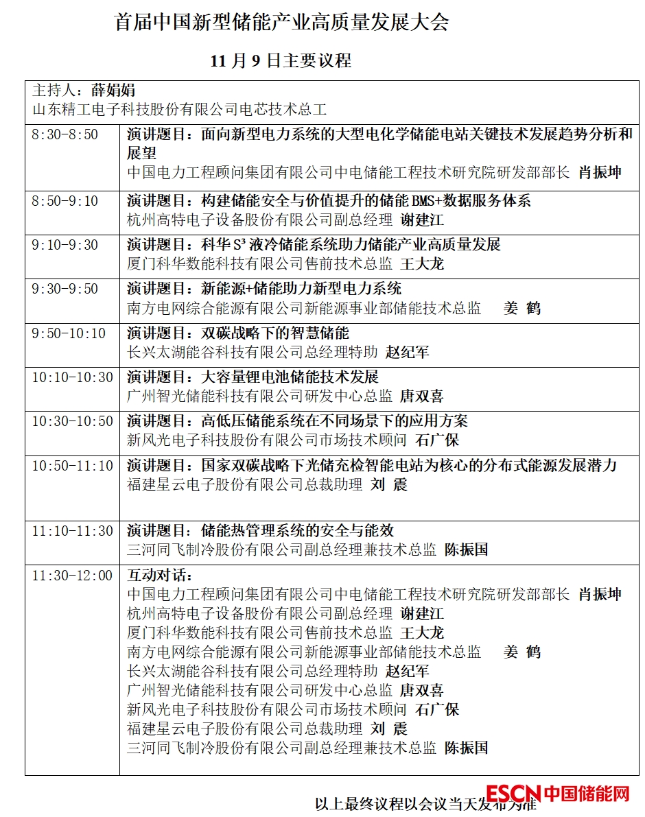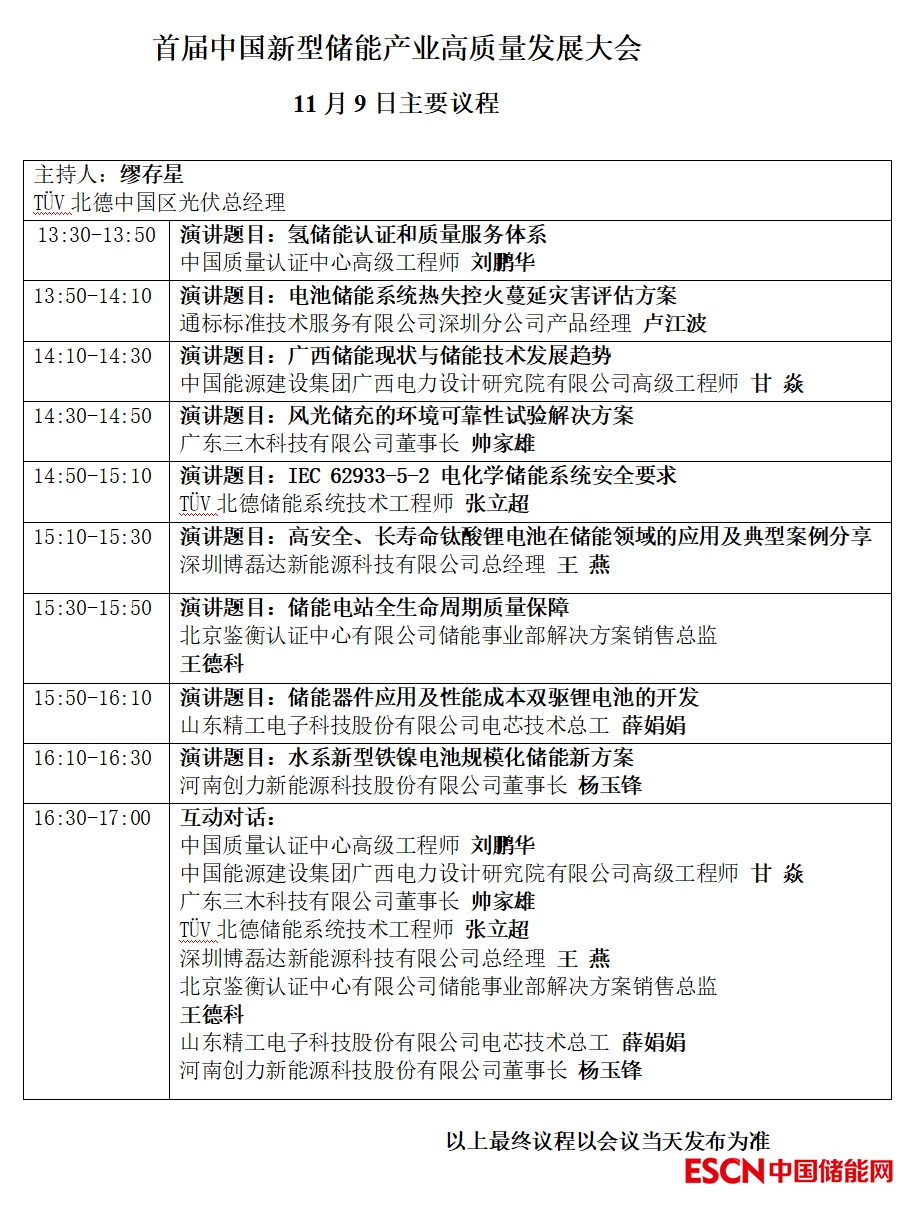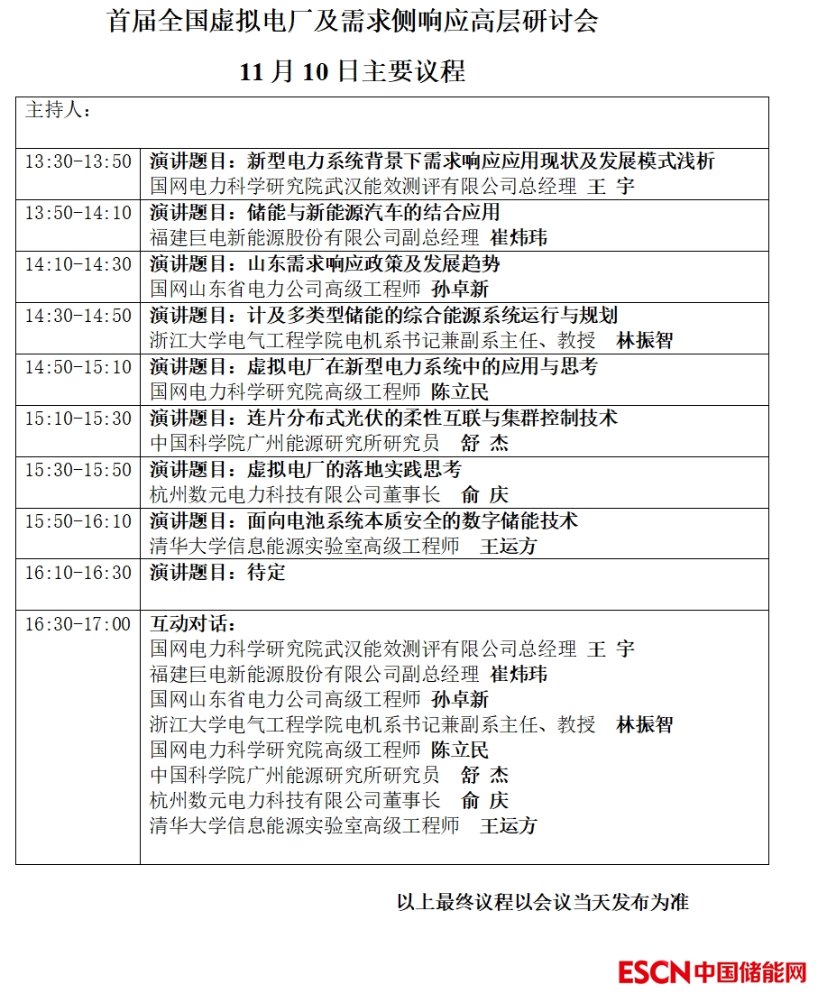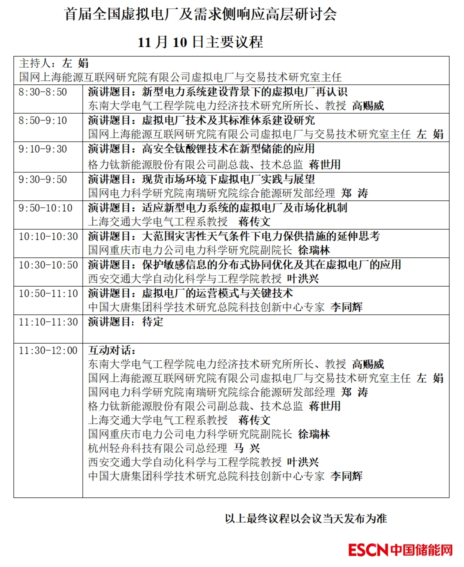 中國(guó)儲(chǔ)能網(wǎng)訊:為進(jìn)一步探討新型儲(chǔ)能系統(tǒng)集成與控制技術(shù)取得突破,建立和完善新型儲(chǔ)能裝備制造供應(yīng)鏈,推進(jìn)用戶側(cè)電力資源的智能聚合、互動(dòng)調(diào)控能力,提升項(xiàng)目規(guī)模效益和運(yùn)行經(jīng)濟(jì)性,中國(guó)化學(xué)與物理電源行業(yè)協(xié)會(huì)決定于2022年11月9-10日在山東濟(jì)南喜來(lái)登酒店召開“首屆中國(guó)新型儲(chǔ)能產(chǎn)業(yè)高質(zhì)量發(fā)展大會(huì)暨全國(guó)虛擬電廠及需求側(cè)響應(yīng)高層研討會(huì)”,以下為會(huì)議主要議程,供參考。