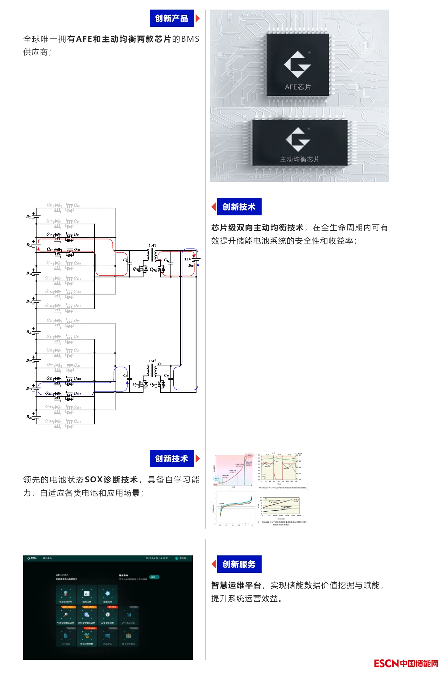 在電池狀態(tài)SOX計(jì)算和電池主動(dòng)均衡技術(shù)上處于行業(yè)領(lǐng)先地位。具有自主知識(shí)產(chǎn)權(quán)的BMS專用芯片和雙向主動(dòng)均衡芯片、1500V主動(dòng)均衡BMS等產(chǎn)品,已實(shí)現(xiàn)儲(chǔ)能應(yīng)用場(chǎng)景的全覆蓋。