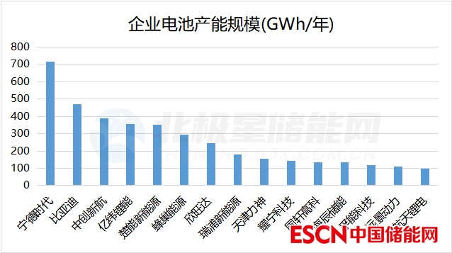 現(xiàn)階段,產(chǎn)能超100GWh以上的企業(yè)共有15家,總產(chǎn)能達(dá)到3909GWh、占據(jù)近八成的市場(chǎng)份額。具體包括:寧德時(shí)代、比亞迪、中創(chuàng)新航、億緯鋰能、楚能新能源、蜂巢能源、欣旺達(dá)、瑞浦新能源、天津力神、耀寧科技、國(guó)軒高科、海辰儲(chǔ)能、孚能科技、遠(yuǎn)景動(dòng)力、航天鋰電。