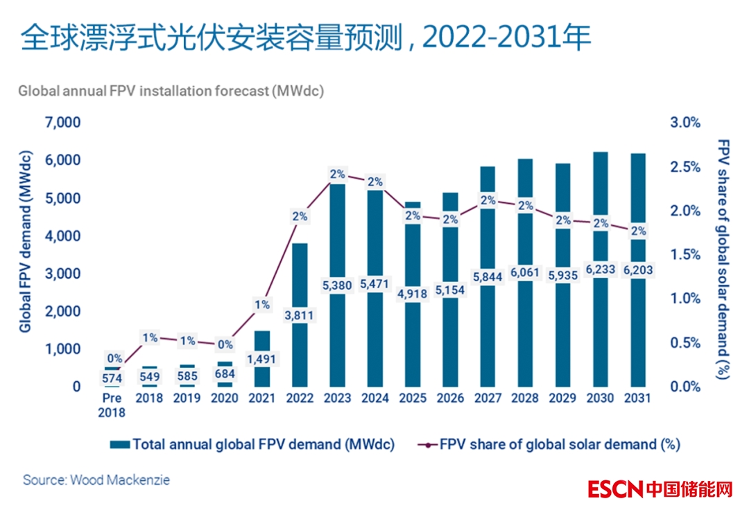 中國儲能網(wǎng)訊:隨著漂浮式光伏技術(shù)的發(fā)展,越來越多的利益相關(guān)方將擠進漂浮式光伏市場角逐,漂浮式光伏市場的格局可能即將發(fā)生改變。2022年,全球漂浮式光伏市場的總規(guī)模預(yù)計接近4GWdc,同比增長150%。