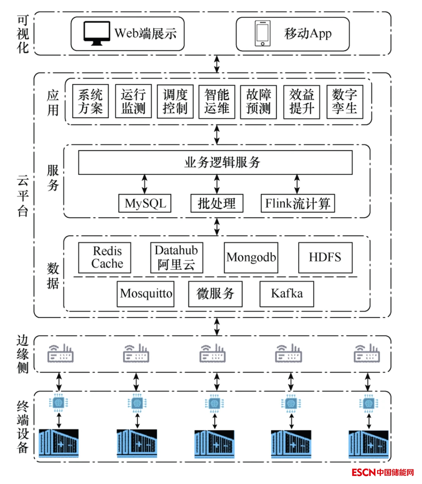 本文基于儲(chǔ)能云數(shù)字化技術(shù),通過(guò)云管理系統(tǒng)、大數(shù)據(jù)分析與人工智能技術(shù)的融合,助力解決儲(chǔ)能大規(guī)模應(yīng)用所面臨難題。本文提出了基于儲(chǔ)能云架構(gòu)的能源工業(yè)互聯(lián)網(wǎng)平臺(tái),實(shí)現(xiàn)設(shè)備泛在接入、大數(shù)據(jù)分析、能量管理、優(yōu)化控制、智能評(píng)估等功能;基于儲(chǔ)能云總體架構(gòu),詳細(xì)分析了云邊端各部分的組件和配置,并介紹了工業(yè)互聯(lián)網(wǎng)云平臺(tái)功能、數(shù)據(jù)分析計(jì)算流程,最后介紹了系統(tǒng)示范應(yīng)用。