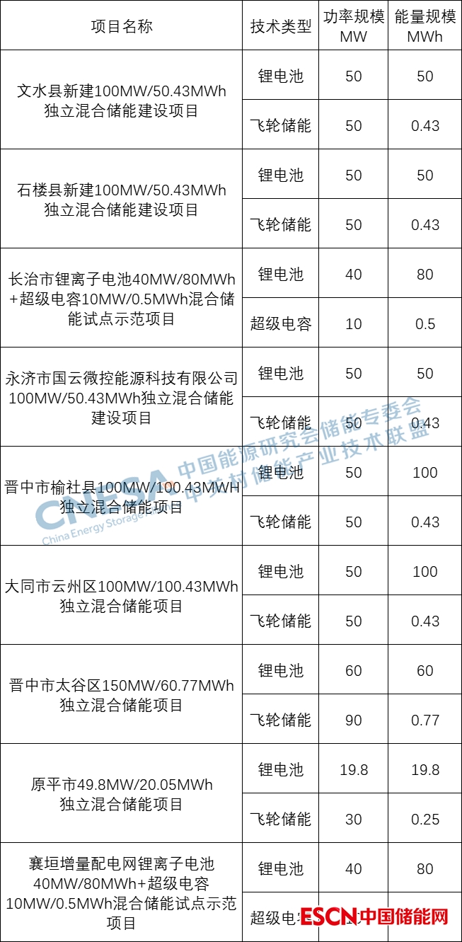 據(jù)了解,2022年,山西省已審批通過9個混合儲能項(xiàng)目,技術(shù)類型主要是鋰電池配合飛輪儲能系統(tǒng)和超級電容,總規(guī)模達(dá):799.8MW/593.97MWh。