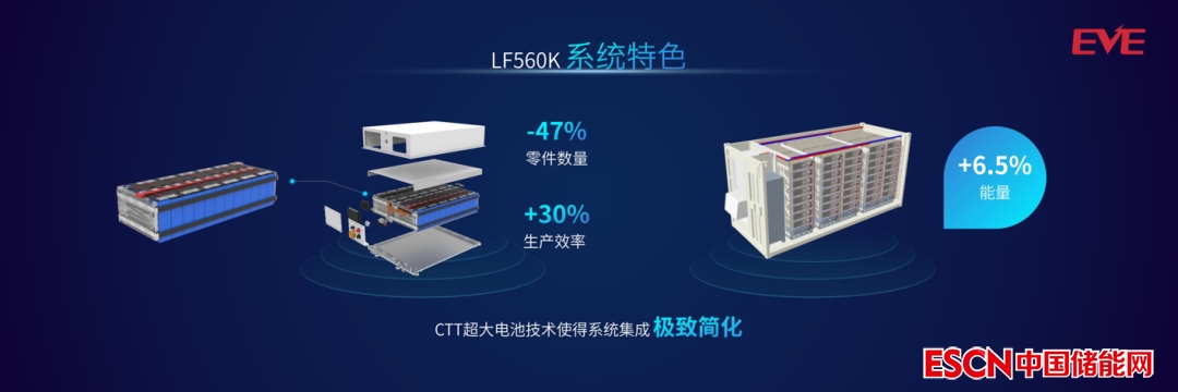 在系統(tǒng)集成的應(yīng)用中,相較于LF280K電池,使用LF560K電池可減少電芯數(shù)量50%、簡(jiǎn)化Pack零部件數(shù)量47%,提升生產(chǎn)效率30%。此外,通過(guò)簇級(jí)別尺寸的優(yōu)化,可提高集裝箱電量6.5%,完美適配行業(yè)標(biāo)準(zhǔn)集成方案,降低客戶使用成本。