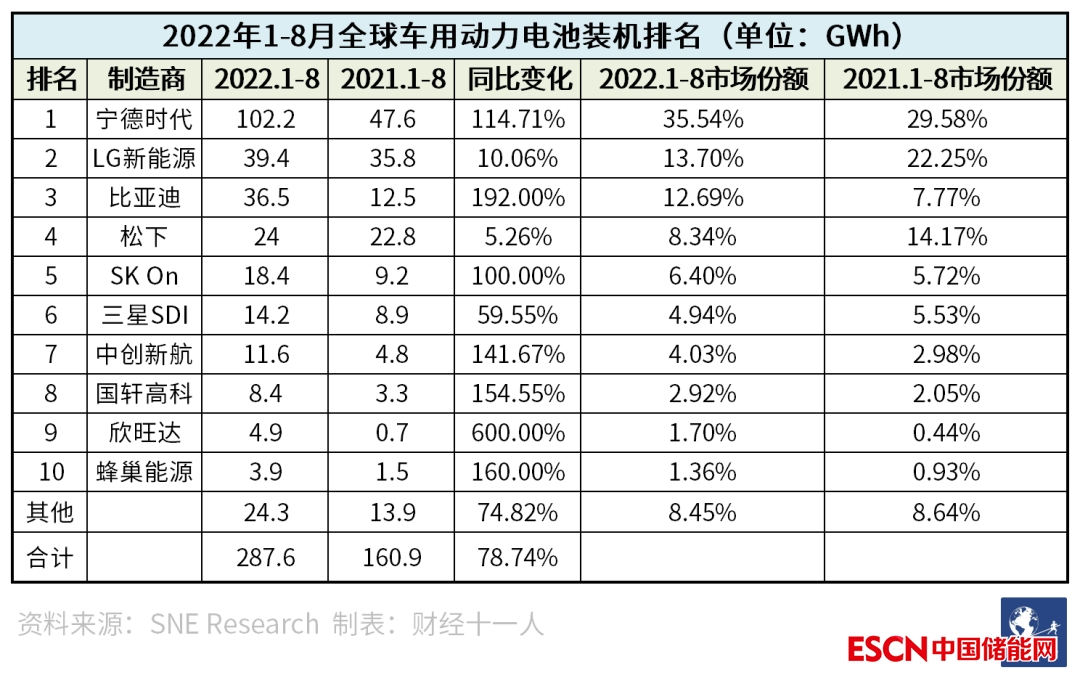 這其中有中國新能源車市場高速增長的影響,同時今年中國電池企業(yè)搶占海外市場的勢頭非常兇猛。以寧德時代為例,2022年1-8月,寧德時代全球裝機量102.2GWh,國內(nèi)裝機76.9GWh,海外裝機25.3GWh,海外部分已經(jīng)占到四分之一。