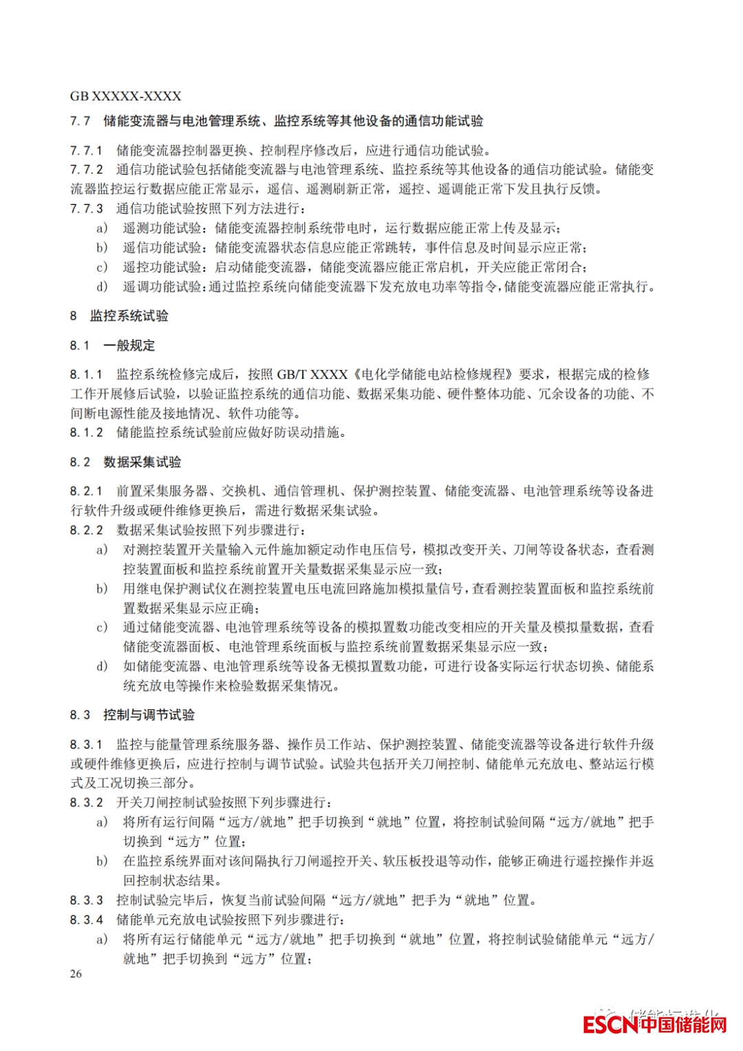 《電化學(xué)儲(chǔ)能電站檢修試驗(yàn)規(guī)程》規(guī)定了電化學(xué)儲(chǔ)能電站檢修試驗(yàn)所需試驗(yàn)設(shè)備和電池陣列、儲(chǔ)能變流器、監(jiān)控系統(tǒng)以及整站試驗(yàn)的項(xiàng)目、方法和技術(shù)要求等,全面反映了電化學(xué)儲(chǔ)能電站檢修試驗(yàn)的規(guī)范化要求。本文件適用于以鋰離子電池、鉛炭電池、液流電池、燃料電池為儲(chǔ)能載體的電化學(xué)儲(chǔ)能電站。