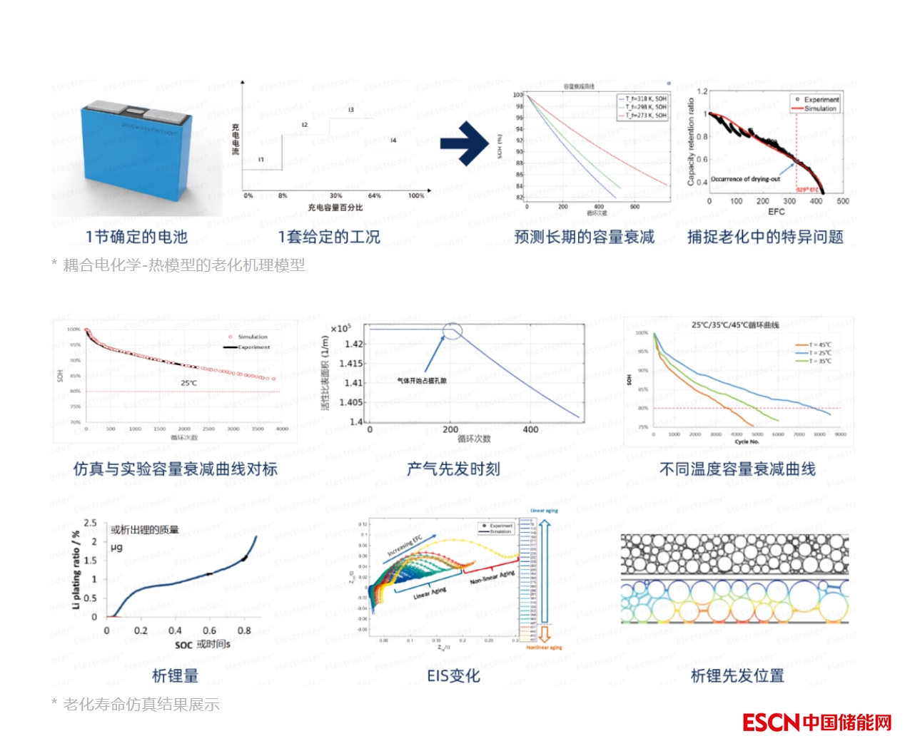 同時(shí),基于耦合電化學(xué)-熱模型的老化機(jī)理模型,可以快速為用戶提供高精度電池老化預(yù)測(cè)結(jié)果(誤差10%以內(nèi))和更有效的長(zhǎng)壽命電池設(shè)計(jì)方案。