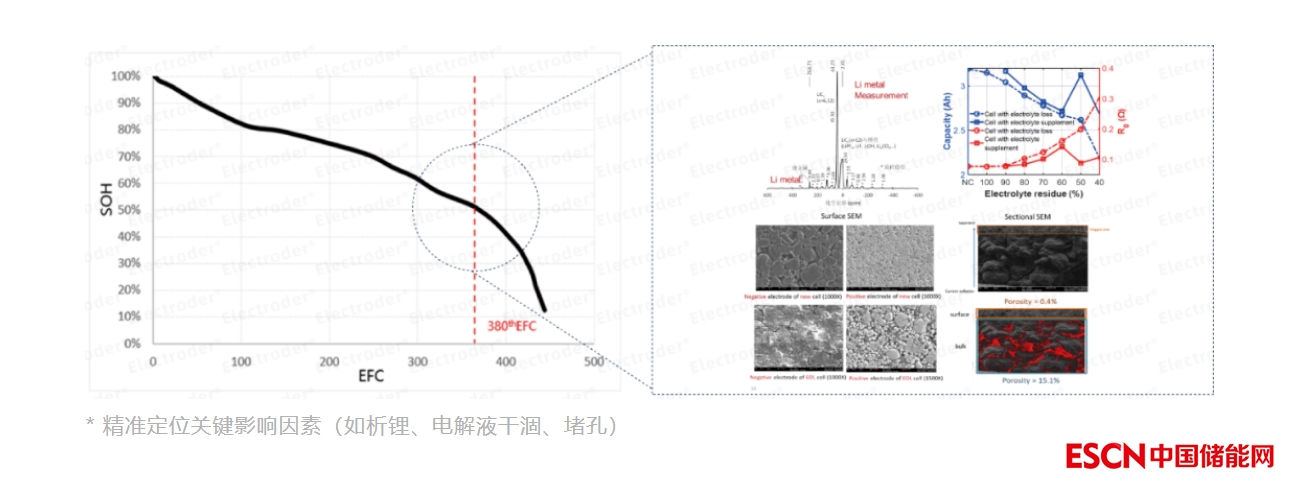 例如,電池壽命后期突然發(fā)生的容量跳水、電池負(fù)極表面析鋰及帶來(lái)的電解液的耗干等,而這些現(xiàn)象對(duì)于迅速捕捉電池容量的陡峭變化及時(shí)更新BMS算法、在線故障診斷、預(yù)防電池安全事故等,以及可能的梯次利用場(chǎng)景等,都具有重要價(jià)值。