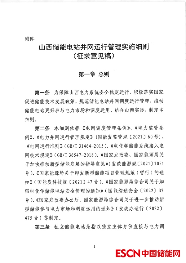 中國(guó)儲(chǔ)能網(wǎng)訊:10月27日,山西省能監(jiān)辦發(fā)布《山西儲(chǔ)能電站并網(wǎng)運(yùn)行管理實(shí)施細(xì)則(征求意見稿)》。