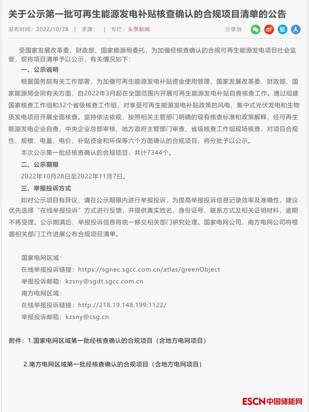 10月28日,信用中國(guó)網(wǎng)站發(fā)布《關(guān)于公示第一批可再生能源發(fā)電補(bǔ)貼核查確認(rèn)的合規(guī)項(xiàng)目清單的公告》。公示稱,自3月以來,相關(guān)部門通過組建國(guó)家核查工作組和32個(gè)省級(jí)核查工作組,對(duì)享受可再生能源發(fā)電補(bǔ)貼政策的風(fēng)電、集中式光伏發(fā)電和生物質(zhì)發(fā)電項(xiàng)目開展全面核查。堅(jiān)持依法依規(guī),按照相關(guān)主管部門明確的現(xiàn)有核查標(biāo)準(zhǔn)和政策解釋,經(jīng)可再生能源發(fā)電企業(yè)自查、中央企業(yè)總部審核、地方政府主管部門審查、省級(jí)核查工作組現(xiàn)場(chǎng)核查,對(duì)項(xiàng)目合規(guī)性、規(guī)模、電量、電價(jià)、補(bǔ)貼資金和環(huán)保等六個(gè)方面確認(rèn)的合規(guī)項(xiàng)目,將分批予以公示,第一批經(jīng)核查確認(rèn)的合規(guī)項(xiàng)目共計(jì)7344個(gè)。