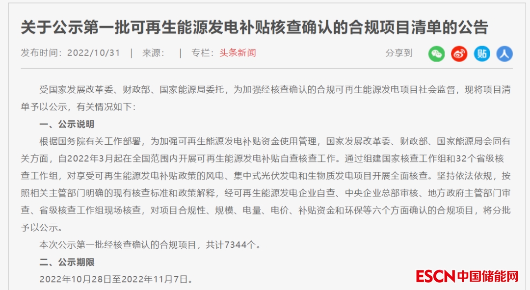 中國儲能網(wǎng)訊:10月以來,備受業(yè)界關(guān)注的史上最嚴(yán)可再生能源補(bǔ)貼核查進(jìn)展密集釋放。10月31日,信用中國網(wǎng)站披露,通過組建國家核查工作組和32個(gè)省級核查工作組,對享受可再生能源發(fā)電補(bǔ)貼政策的風(fēng)電、集中式光伏發(fā)電和生物質(zhì)發(fā)電項(xiàng)目開展全面核查,第一批經(jīng)核查確認(rèn)的7344個(gè)合規(guī)項(xiàng)目清單已公布。