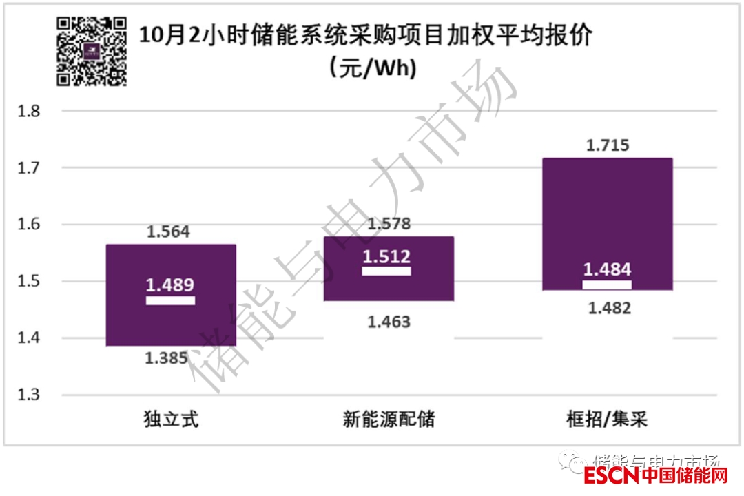 獨(dú)立式儲(chǔ)能項(xiàng)目儲(chǔ)能系統(tǒng)采購加權(quán)平均報(bào)價(jià)次之,為1.489元/Wh。