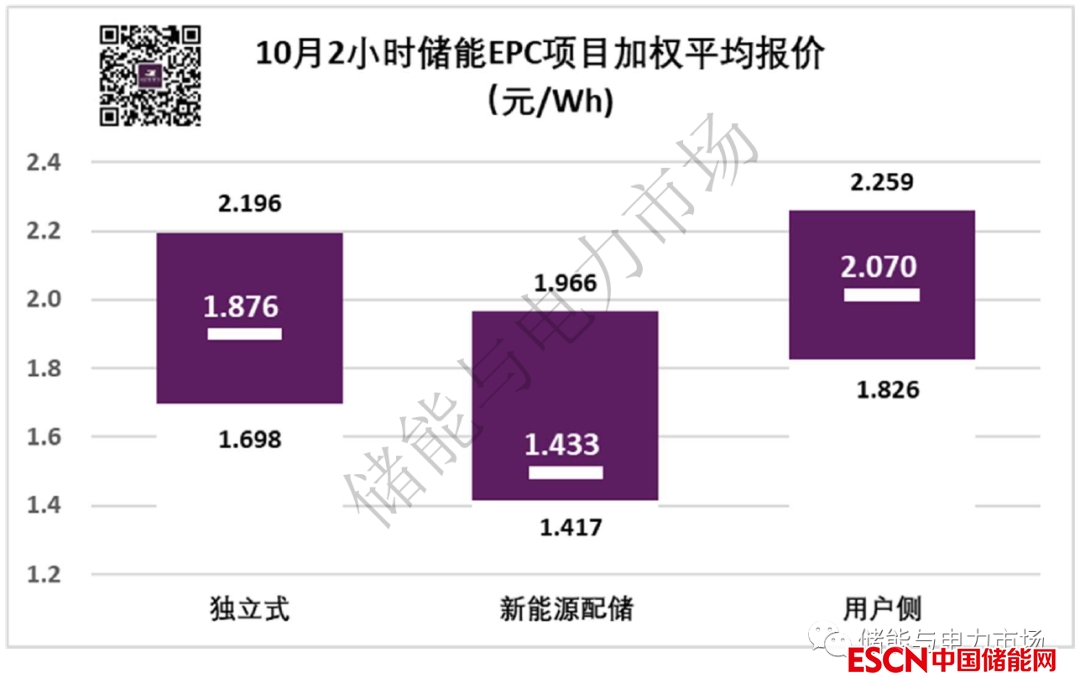 新能源配儲(chǔ)EPC加權(quán)平均報(bào)價(jià)最低,為1.433元/Wh。